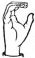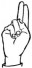 На ћирилици написано САЊА КОСНИЋ састоји се из 10 слова [?]. Исписано ћириличном једноручном азбуком за глувонеме: